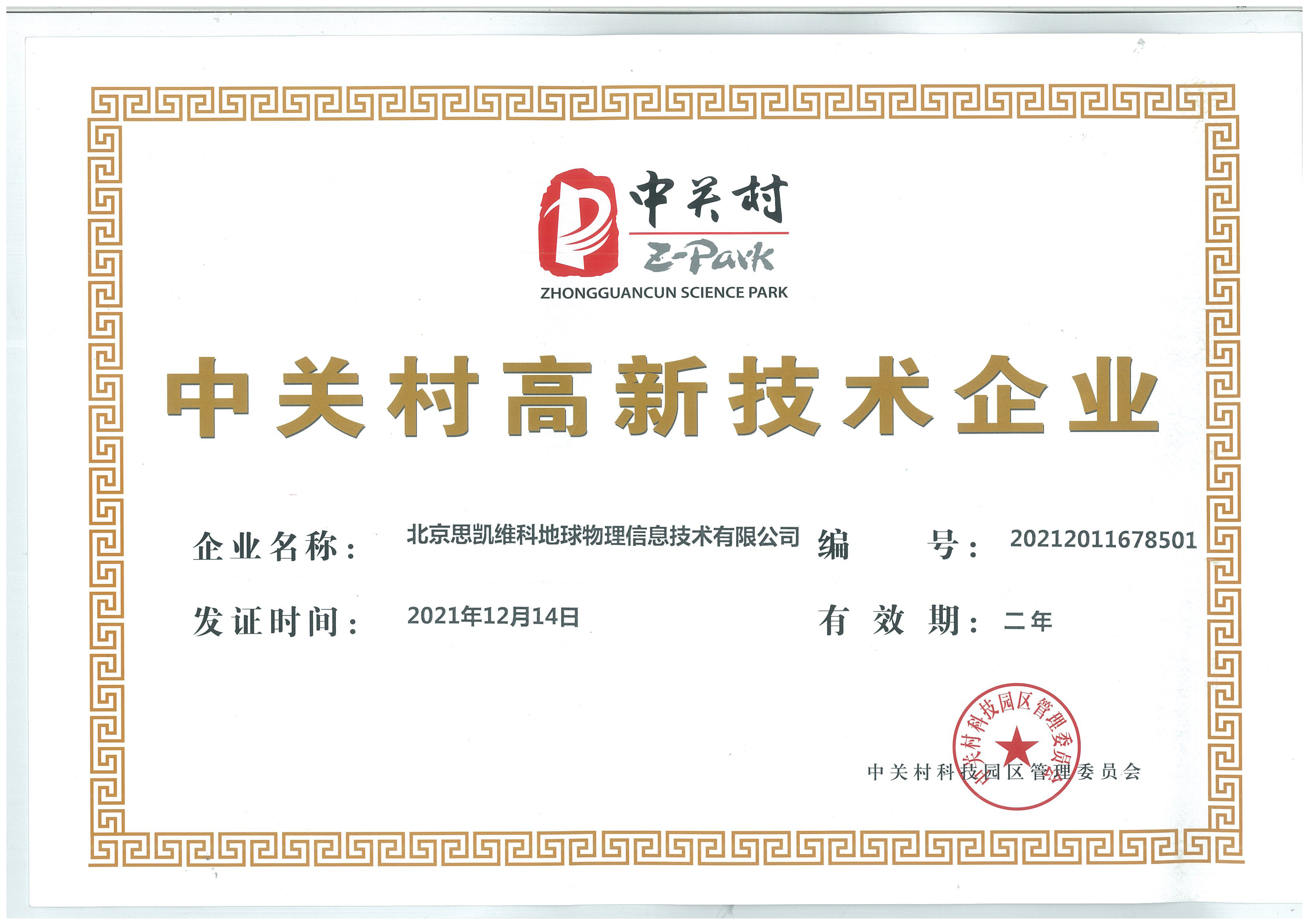 祝贺我公司获得“中关村高新技术企业”荣誉证书