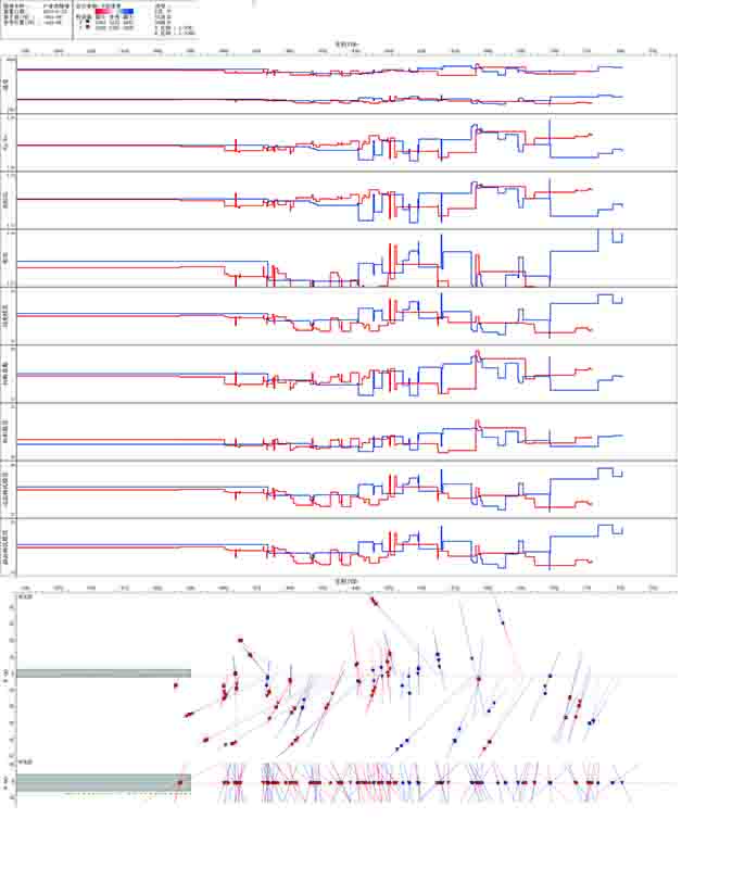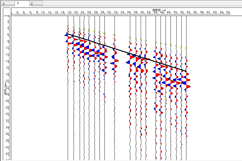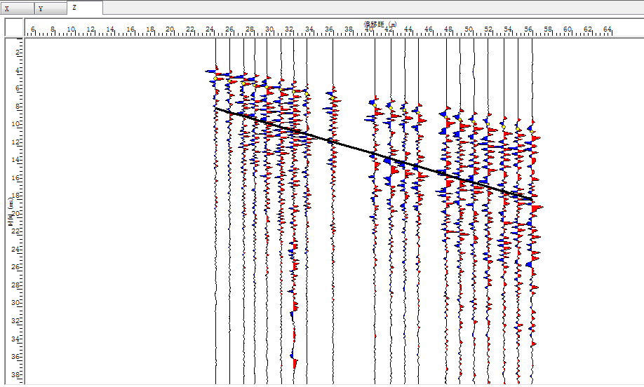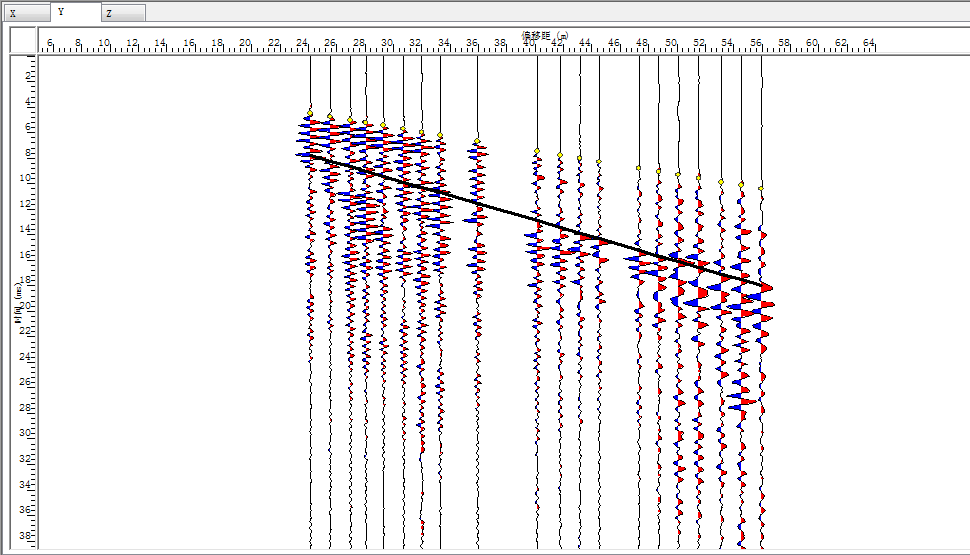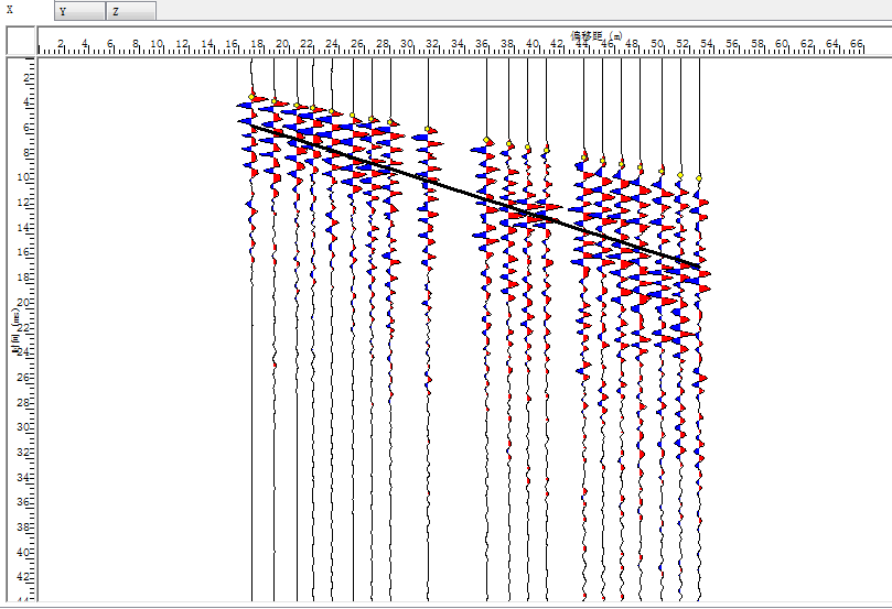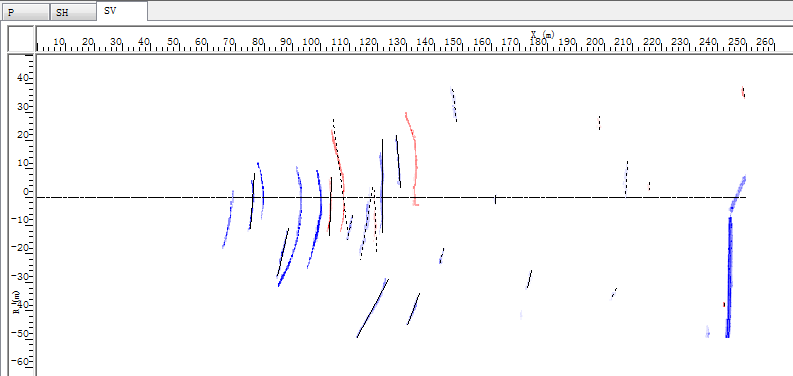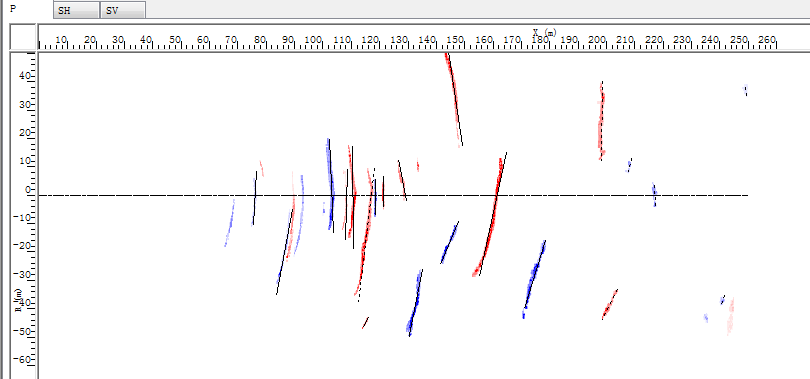 | 检波器 | 序号 | 波型 | 与轴线相交 | X坐标 | R坐标 | 长度 | 能量 | 极性 | 视倾角 | 假设走向 | 计算倾角 | 通过筛选 | 显示 |