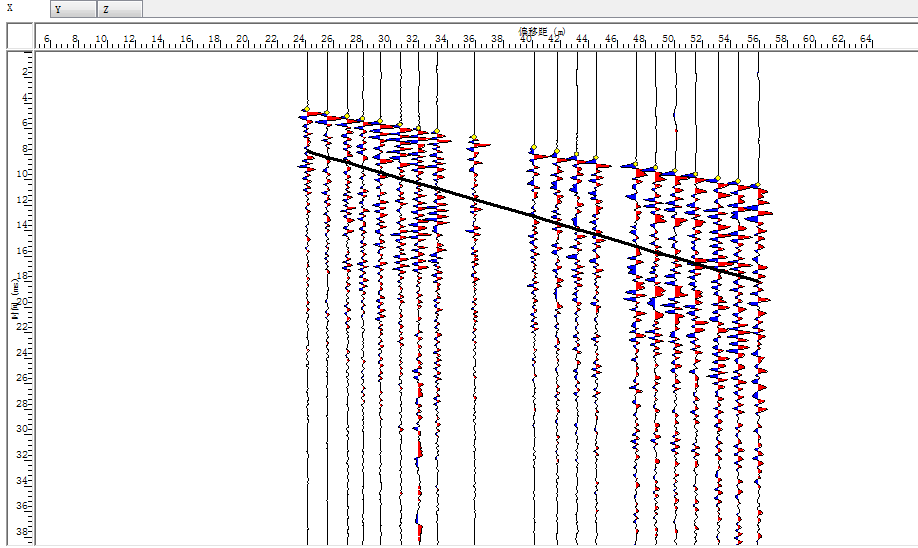 2、正反射振幅表明正的反射系数,也就是刚性岩层;负反射振幅指向软弱岩层。