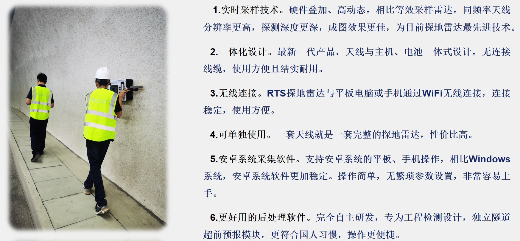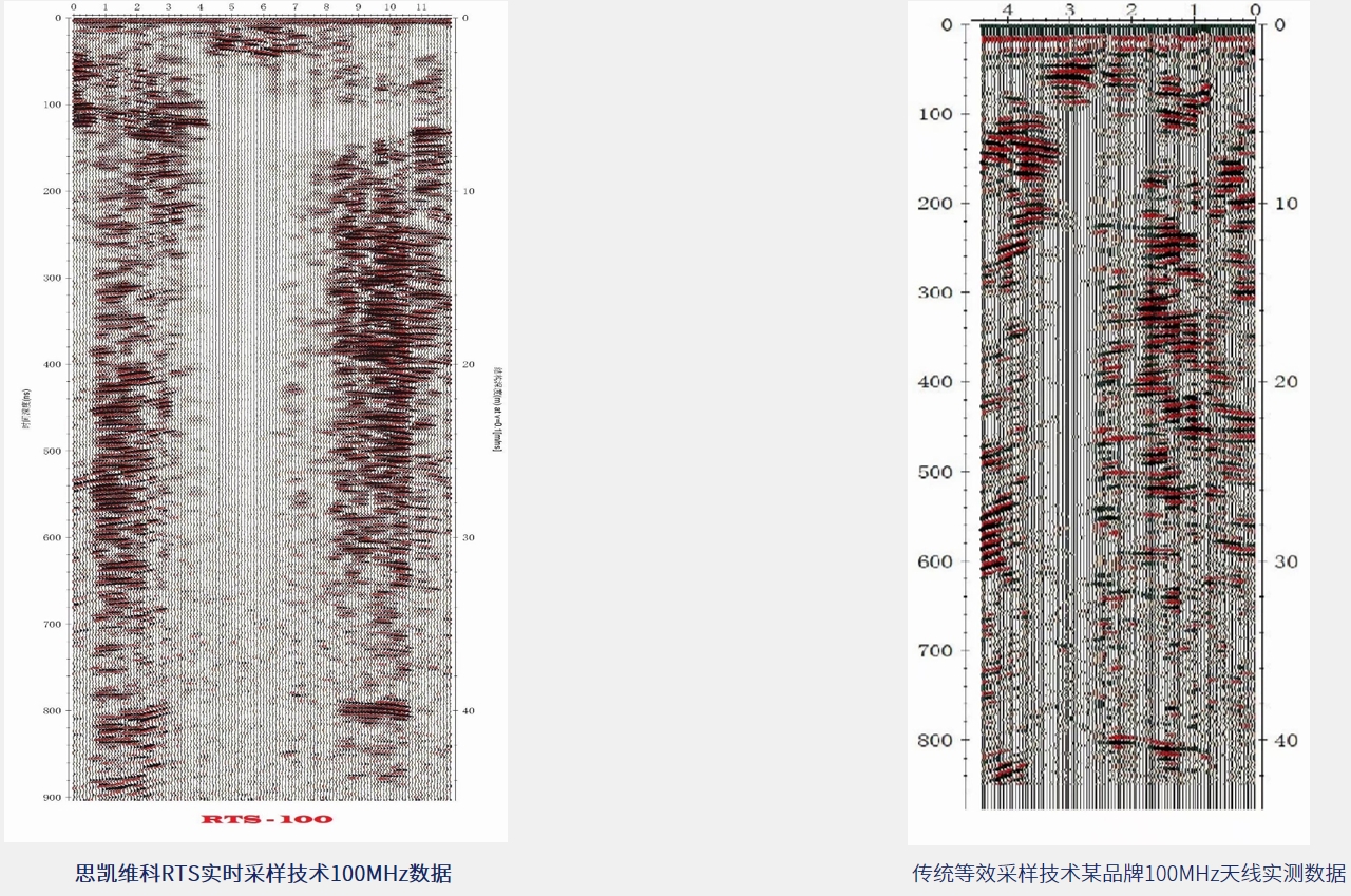 RTS 系列无线探地雷达较传统雷达具有探深更深、抗干扰能力强、信噪比更高、图像清晰,大大提高了现场采集和数据处理工作的便捷性。