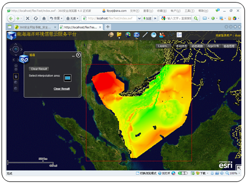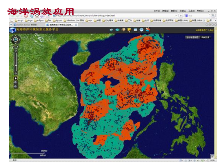 公司技术顾问王博士通过探索云环境下海洋环境数据组织与存储方式,开展部分数据的存储管理实验,围绕云环境中的典型GIS应用研究,搭建云计算环境,并基于商业软件(ArcGIS Server 10.0)开发海洋环境信息云计算与云服务应用系统。