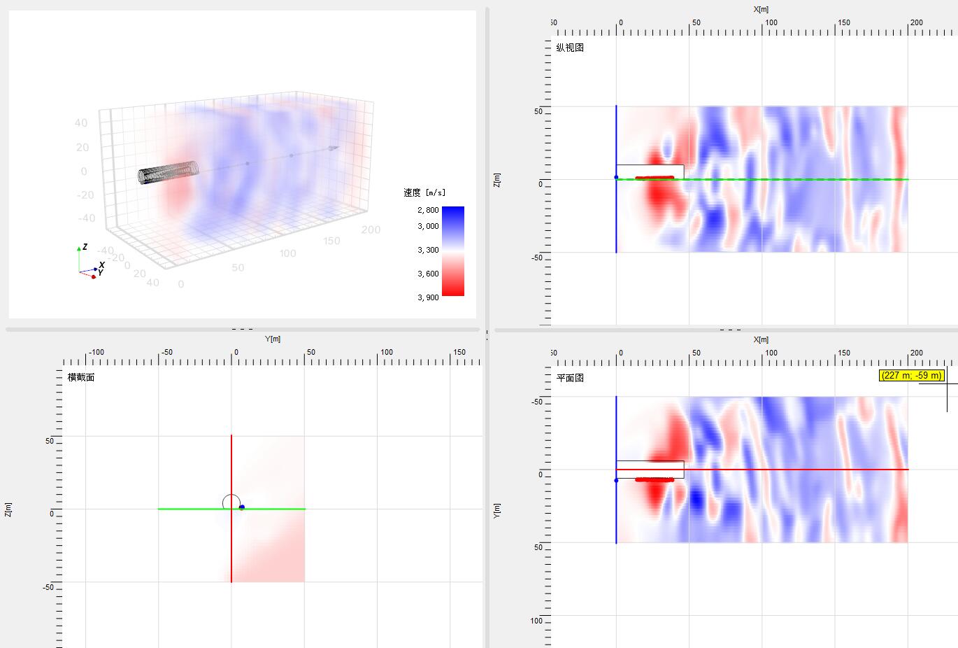 图6 TSP-SK系统速度分析3D及2D图